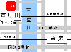 ・神戸三宮から(阪急三宮駅→普通または急行に乗って→芦屋川駅→降りて北へ進み・・・徒歩1分)